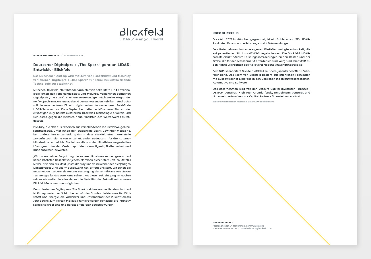 Corporate Design für Blickfeld – ein Anbieter für 3 D LiDAR Produkte für autonome Fahrzeuge und IoT-Anwendungen