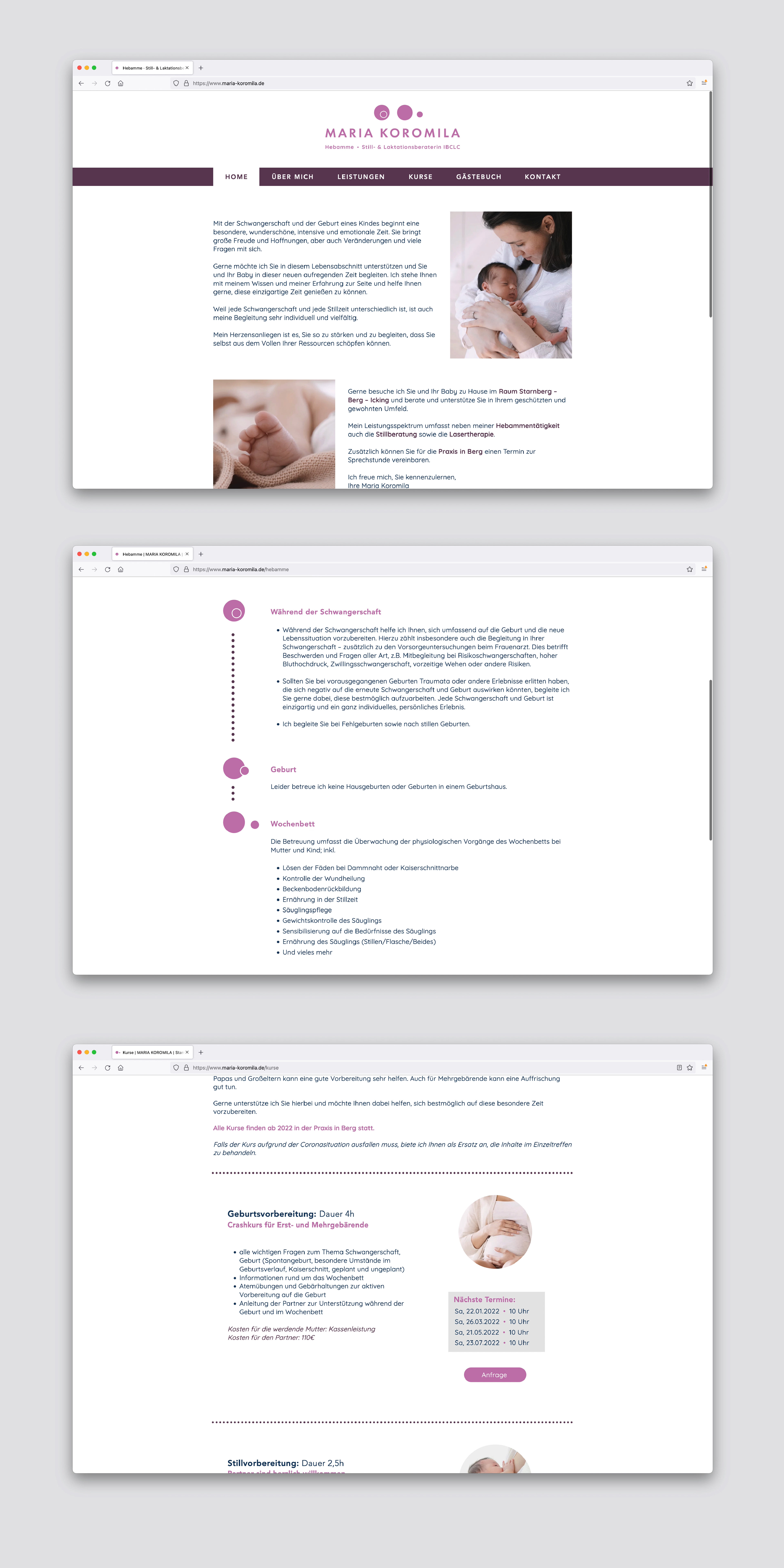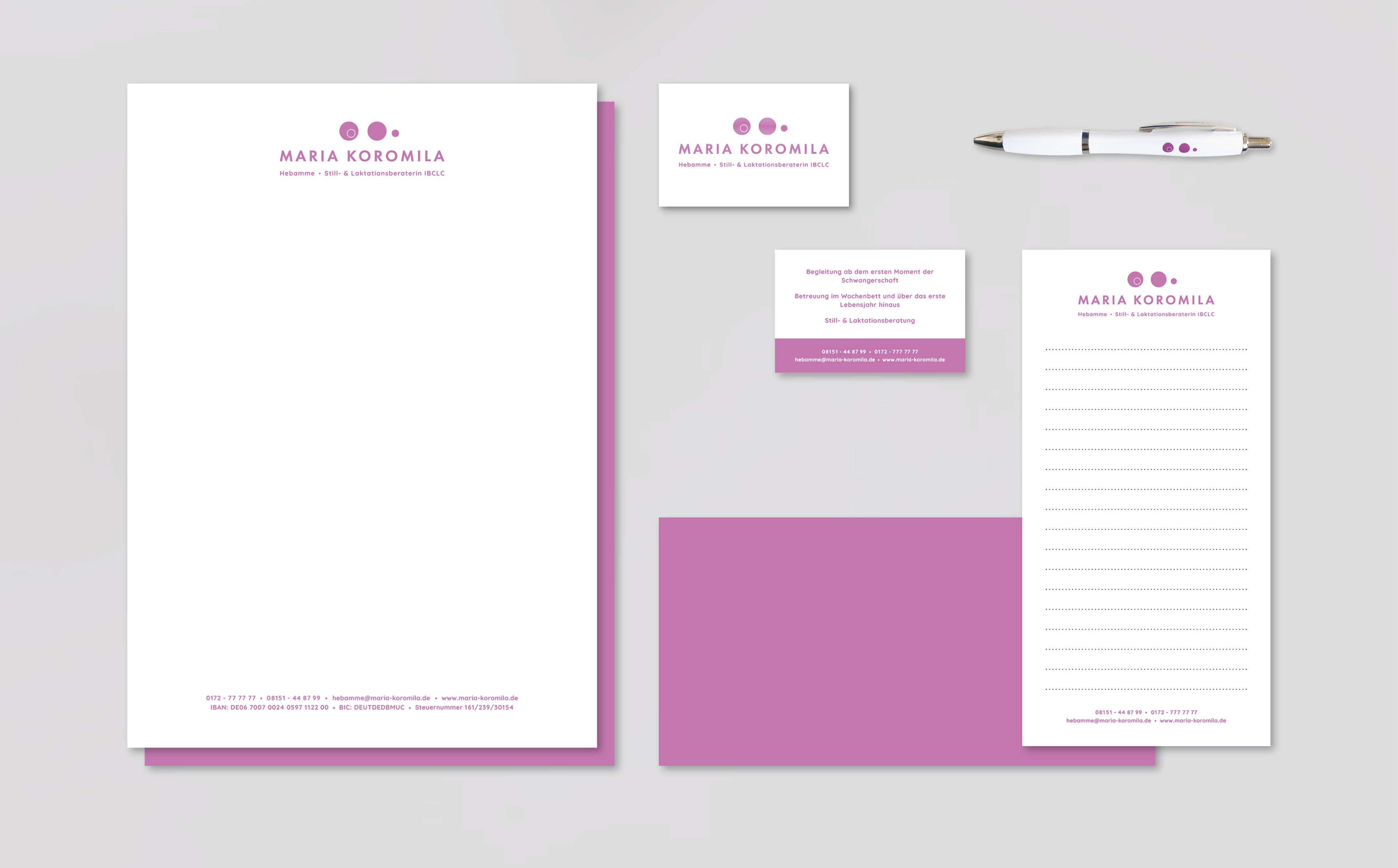 Logo, visuelles Erscheinungsbild und Webdesign für Maria Koromila – Hebamme, Still- & Laktationsberaterin